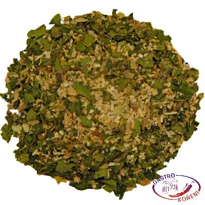 Soľ (max. 18%), korenie (cesnak, cibuľa, petržlen, čierne korenie, bazalka, oregano). Môže obsahovať stopy lepku, zeleru, horčice a sezamu.