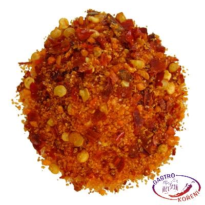 Soľ morská hrubá, soľ jemná (max. 34%), korenie (chilli, cesnak, cayenské korenie, paprika). Môže obsahovať stopy lepku, zeleru, horčice a sezamu.