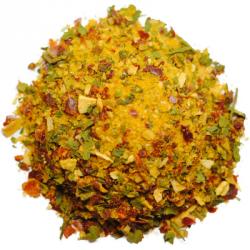 GURMÁNKA S PAPRIKOU A LIGURČEKOM BEZ E 621Originálna zmes s paprikovými vločkami a výdatnou vôňou ligurčeka bez pridaného glutamanu na dochutenie každého vývaru, polievok, omáčok a štiav, na ryžu a strukoviny, dusenú a restosvanú zeleninu, varené cestoviny, do studených pokrmov, šalátov a nátierok.