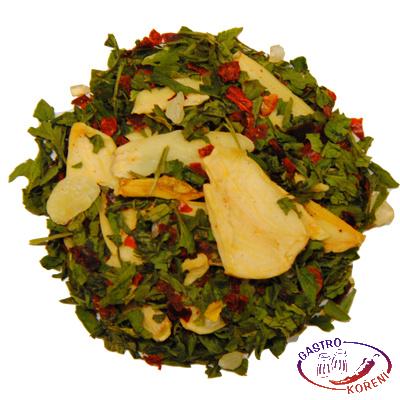 Soľ (max. 25%), korenie (cesnak drvené plátky, drvené chilli, drvená paprika, petržlen list). Môže obsahovať stopy lepku, zeleru, horčice a sezamu.