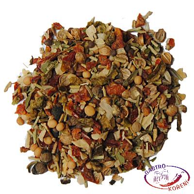 Paprika, cibuľa, rozmarín, čierne korenie, horčica biela, koriander, horčica čierna, tymián, medvedí cesnak.