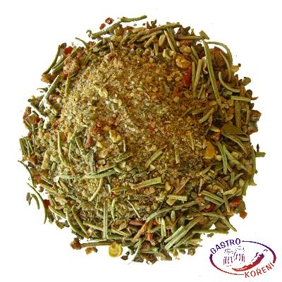 Soľ jemná (max. 29%), korenie (rímska rasca, cibuľa, rozmarín, cesnak, paprika, oregano, zázvor, bazalka).