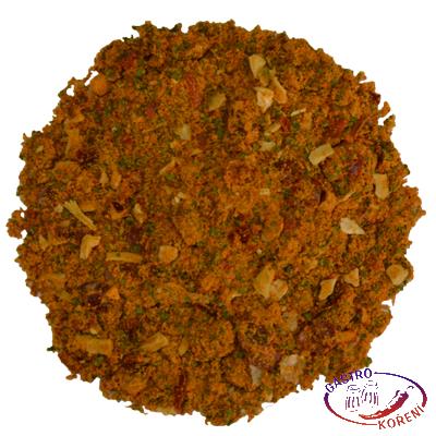 Paprika sladká, kurkuma, paprika drvená, petržlen, cibuľa, cesnak, biele korenie, chilli.