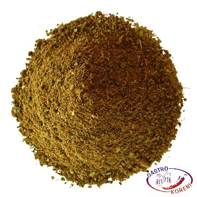Čierne korenie, zázvor, škorica, tymián, bazalka, nové korenie, muškátový oriešok, bobkový list, jedlá soľ 15%.
