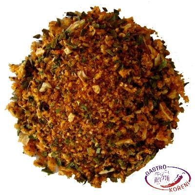 Soľ (max. 39%), korenie (cesnak, cibuľa, bazalka, oregano, rasca, paprika, zázvor, HORČICA, šalvia, chilli).