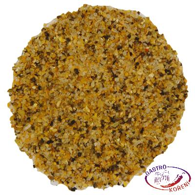 Soľ (max. 60%), čierne korenie triedené, E 621 glutaman sodný, kukuričná múka, cesnak, kvasnicový hydrolyzát, oregano, chilli, rímska rasca, bazalka, zázvor.