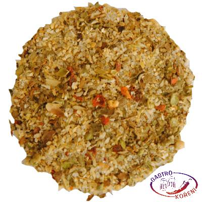 Soľ (max. 48%), korenie (cesnak, cukor, cibuľa, bazalka, oregano, majorán, rozmarín, paprika drvená, bobkový list, čierne korenie).